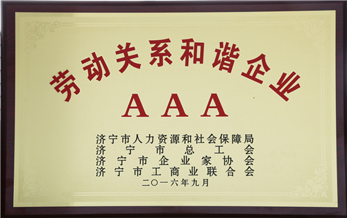 12月3日,集團公司順利通過了濟寧市人力資源和社會保障局及濟寧市總工會的的審定,獲評“濟寧市AAA勞動關系和諧企業”,這是公司獲得“曲阜市勞動關系和諧企業”后,在建設和諧企業勞動關系工作中的又一提升。